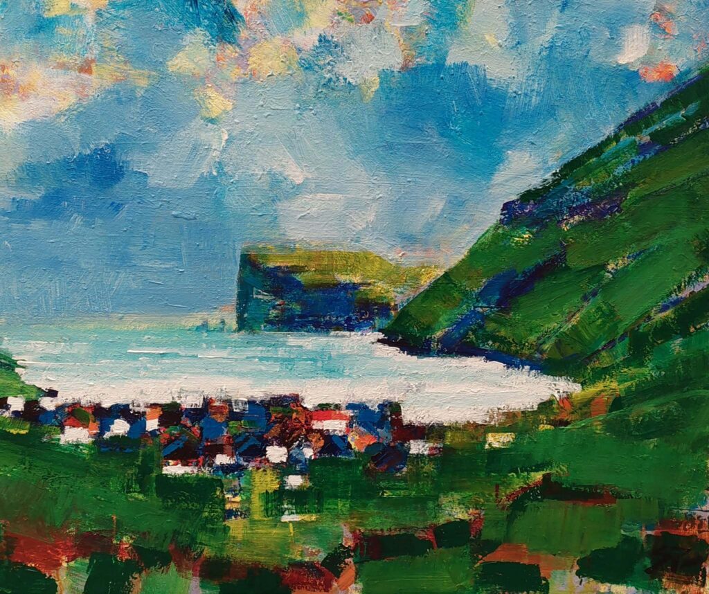 Tjørnuvík, størrelse 70 x 90, akryl.